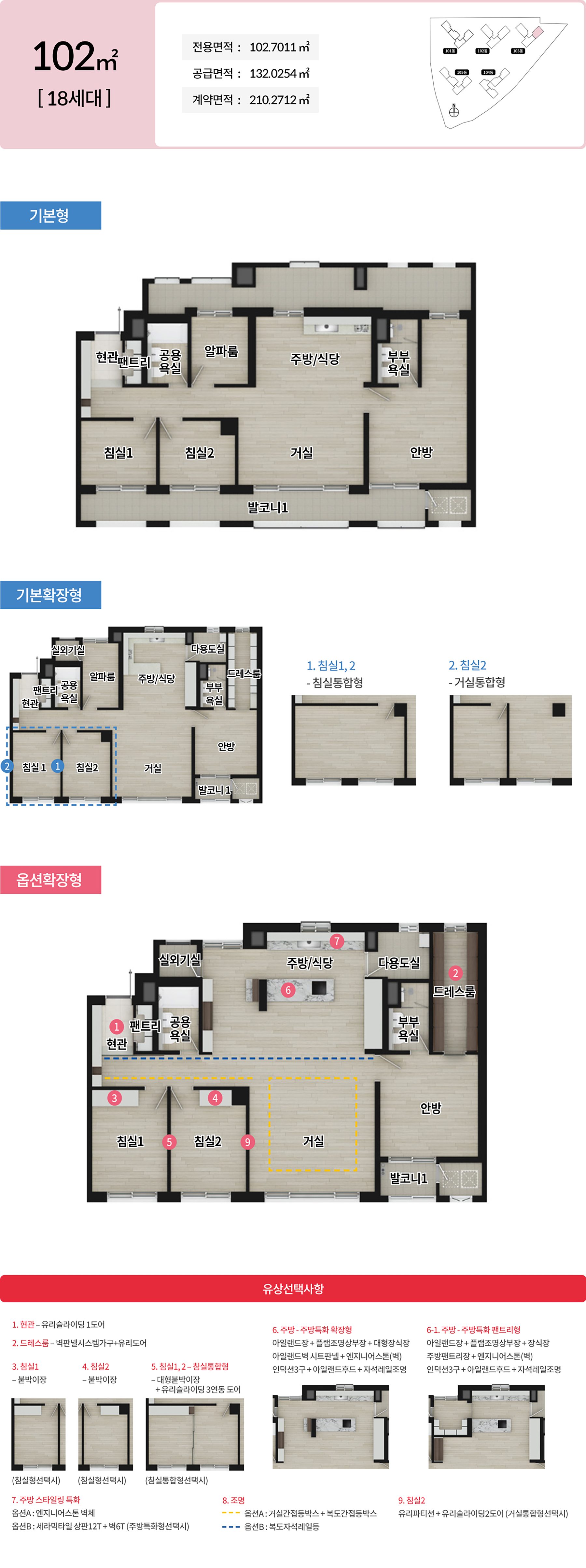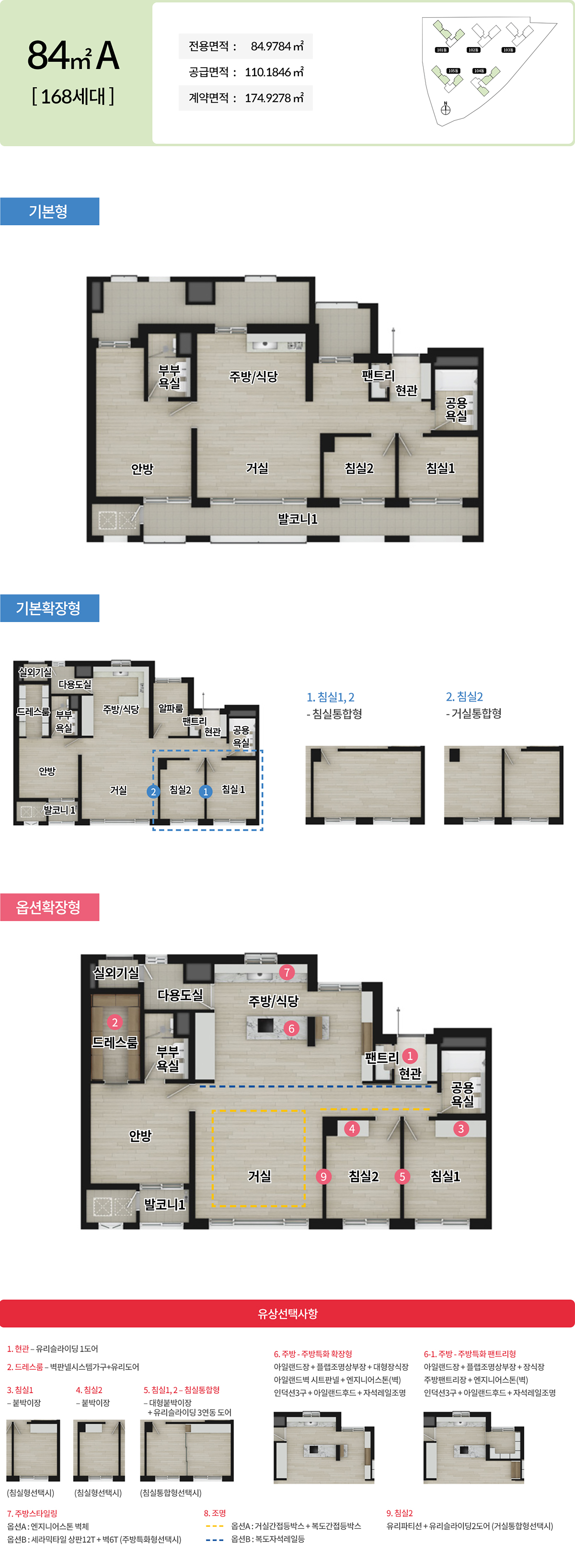 전천후 가변형 공간 (침실통합형, 거실통합형) / 넓은 주방 / 특화 드레스룸